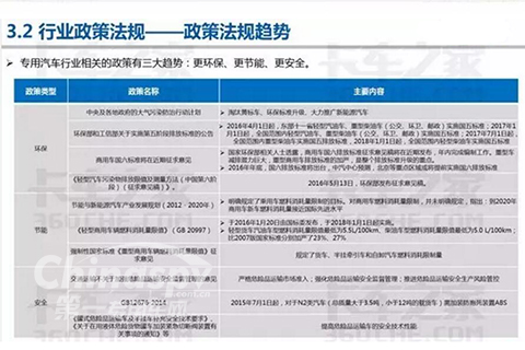 專用車行業(yè)相關(guān)政策三大趨勢:更環(huán)保、更節(jié)能、更安全。