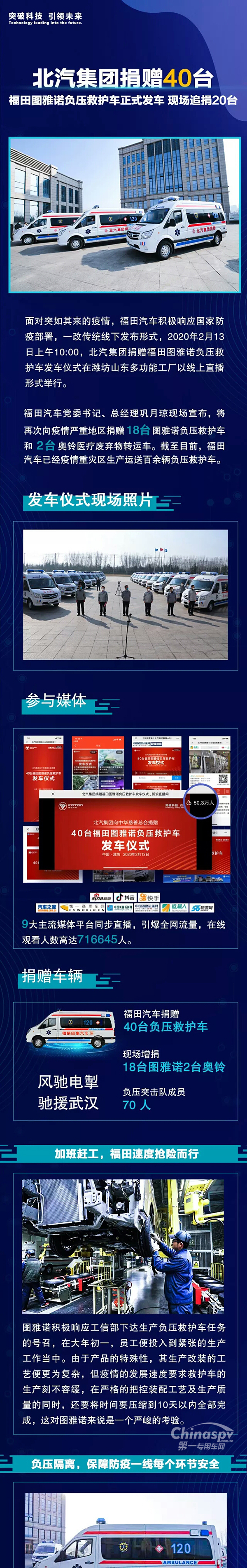 北汽集團(tuán)捐贈(zèng)40輛福田圖雅諾負(fù)壓救護(hù)車
