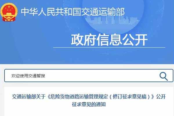 交通運(yùn)輸部關(guān)于《危險貨物道路運(yùn)輸管理規(guī)定(修訂征求意見稿)》公開征求意見的通知