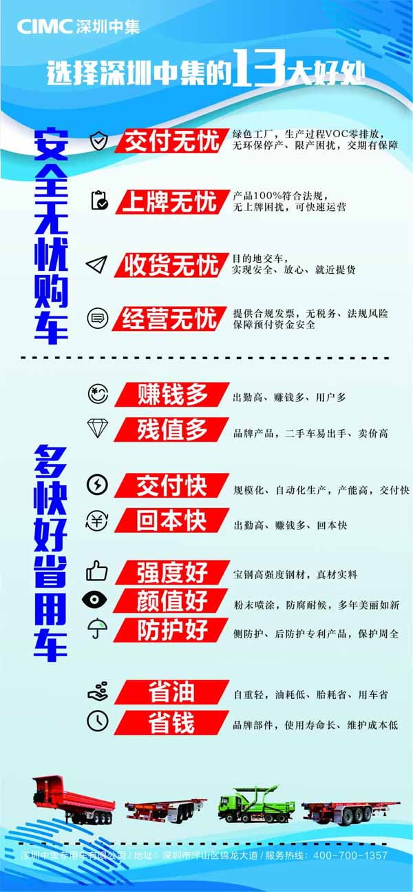 而對于專用車領(lǐng)導(dǎo)品牌來說,在鋼材漲價(jià)的情況下凸顯了運(yùn)營優(yōu)勢。作為華南區(qū)域最大的半掛車生產(chǎn)基地,依托中集集團(tuán)的供應(yīng)鏈優(yōu)勢,深圳中集專用車集中采購質(zhì)量和效率優(yōu)勢明顯,一定程度上緩沖了鋼材價(jià)格對于用戶購車成本的影響。目前深圳中集專用車原材料充足,骨架車、自卸半掛車、渣土車等主銷車型目前均正常接單。