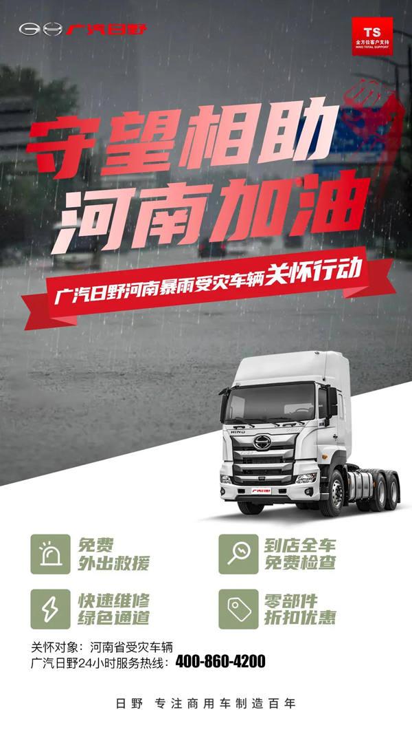 守望相助 廣汽日野河南暴雨受災(zāi)車輛關(guān)懷行動