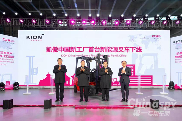 2021年12月16日下午,凱傲中國(guó)叉車(chē)一期項(xiàng)目投產(chǎn)暨美國(guó)德馬泰克項(xiàng)目開(kāi)工活動(dòng)在山東濟(jì)南舉行。山東省委常委、濟(jì)南市委書(shū)記孫立成出席活動(dòng),與譚旭光共同啟動(dòng)首臺(tái)新能源叉車(chē)下線,并宣布美國(guó)德馬泰克項(xiàng)目開(kāi)工。