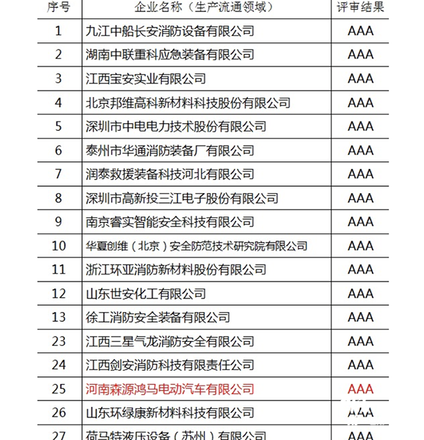 森源鴻馬榮獲中國消防協(xié)會最高信用等級3A
