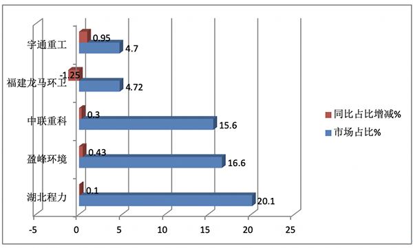 ---盈峰環(huán)境環(huán)衛(wèi)車?yán)塾?jì)銷售13650輛,同比下降16.8%,市場占比16.5%,居第二,且占比同比增加0.43個(gè)百分點(diǎn);