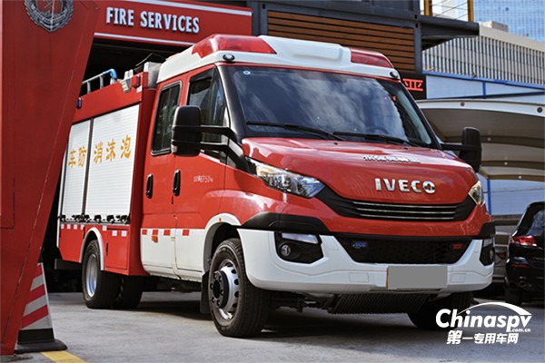 Daily底盤改裝的消防車為永強PM20輕型泡沫消防車,是永強2噸級別泡沫消防車里的高端車型。采用依維柯70C17H底盤,即7噸170馬力的Daily,搭載依維柯HI MATIC自動變速箱。