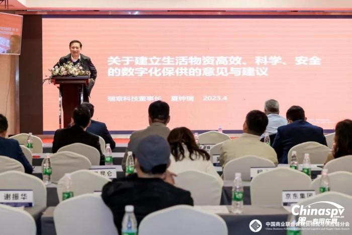 中國(guó)商業(yè)聯(lián)合會(huì)商貿(mào)物流與供應(yīng)鏈分會(huì)會(huì)長(zhǎng)干為在大會(huì)上發(fā)布《我國(guó)城市生活物資流通發(fā)展趨勢(shì)及2023年重點(diǎn)推進(jìn)工作》報(bào)告。