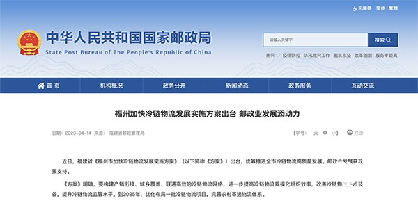 福州加快冷鏈物流發(fā)展 郵政業(yè)發(fā)展獲政策支持
