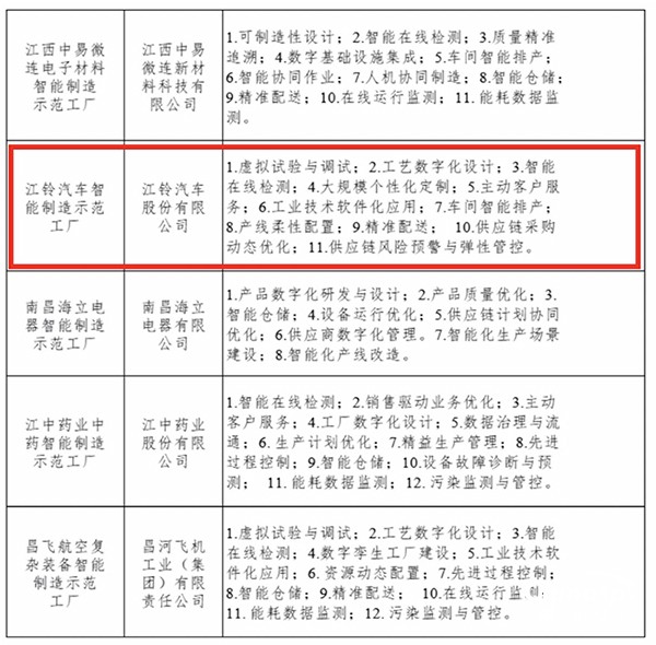 2023年11月9日第一專用車網(wǎng)記者獲悉,近日,國家工業(yè)和信息化部公示了2023年度智能制造示范工廠揭榜單位和優(yōu)秀場景名單。其中,江西共5家企業(yè)入選智能制造示范工廠揭榜單位名單,江鈴汽車股份有限公司榜上有名。這意味著江鈴集團在深化智能制造推廣應(yīng)用上再次獲得權(quán)威認可,成為國家智能制造領(lǐng)域的“排頭兵”。