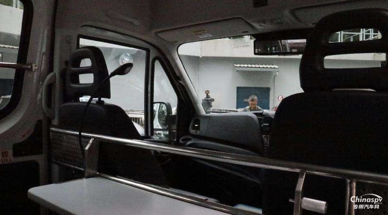 這款車(chē)選用了New Daily高頂車(chē)型,內(nèi)部空間寬闊,上下車(chē)處均設(shè)置了防滑地臺(tái)。寬敞的內(nèi)部空間配合儲(chǔ)物箱和物品架,不僅便于日常出警人員的運(yùn)載需求,還可以在車(chē)上處理文書(shū)工作。