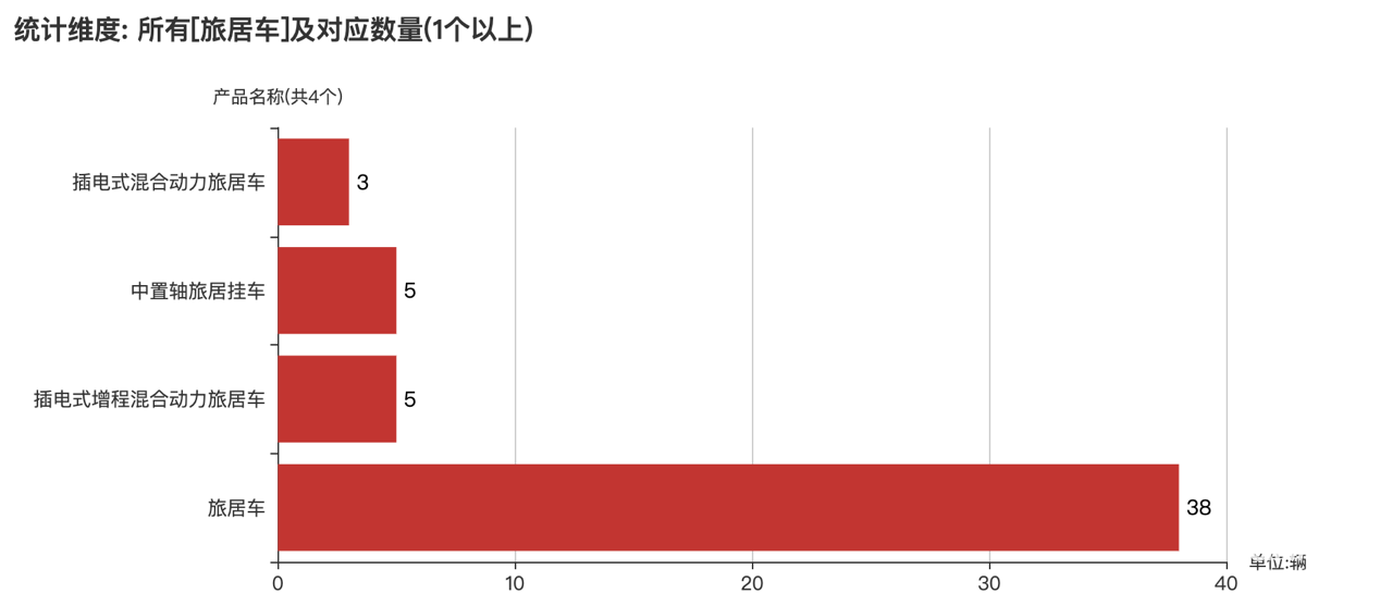 本次公告中的51款旅居車的車型共有4種,旅居車(38輛)、插電式增程混合動力旅居車(5輛)、中置軸旅居掛車(5輛)、插電式混合動力旅居車(3輛)。