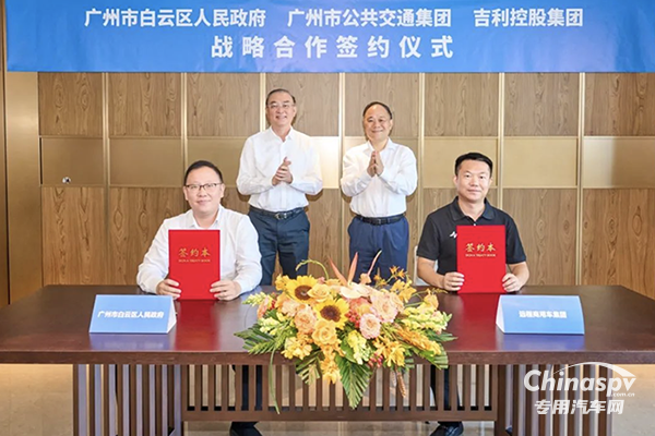 廣州市白云區(qū)委副書記、區(qū)長潘志軍,副區(qū)長陳永俊,廣州市公共交通集團黨委書記、董事長李小軍,總經(jīng)理宋小明,副總經(jīng)理劉偉,吉利控股集團董事長李書福,遠程新能源商用車集團董事長周建群,CEO范現(xiàn)軍,副總裁丁鼎等出席簽約儀式。