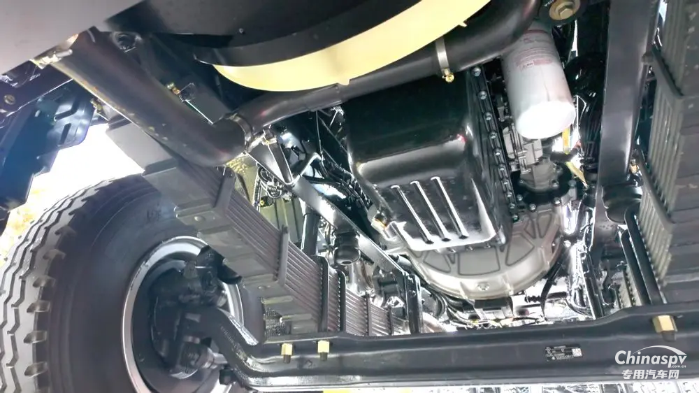 整車搭載采用玉柴S06 270馬力發(fā)動機(jī),搭配大10檔變速箱及速比5.262鑄鋼后橋,整套動力鏈堪稱黃金動力匹配,動力強(qiáng)勁,成熟可靠,起步加速、爬坡過坎毫無壓力。標(biāo)配電控硅油離合器風(fēng)扇總成,搭配發(fā)動機(jī)ECU精準(zhǔn)標(biāo)定,相比市面上普遍采用的直連風(fēng)扇,能夠精確控制水溫,使發(fā)動機(jī)工作在最佳溫度。不僅節(jié)能降噪,更能實(shí)現(xiàn)4%以上的燃油經(jīng)濟(jì)性。