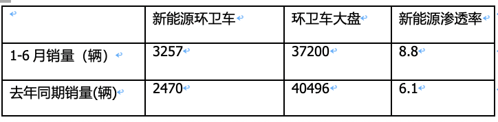 一是雙碳戰(zhàn)略的持續(xù)發(fā)力,導(dǎo)致今年1-6月新能源環(huán)衛(wèi)車同比增長(32%),而今年1-6月環(huán)衛(wèi)車整體市場是下滑的(-8.2%),這樣的“一增一降”,使得今年1-6月新能源環(huán)衛(wèi)車市場滲透率得到提高;