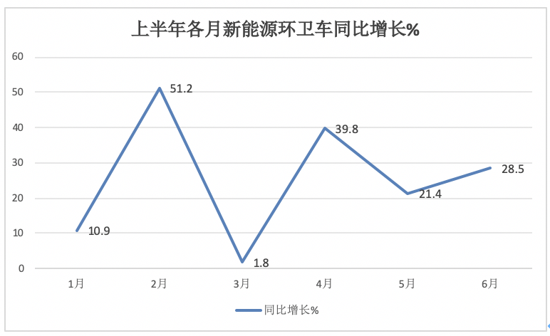 ---今年6月新能源環(huán)衛(wèi)車銷量同比增長28.5%,跑贏今年6月環(huán)衛(wèi)車大盤-21.3%的增速近49.8個百分點;