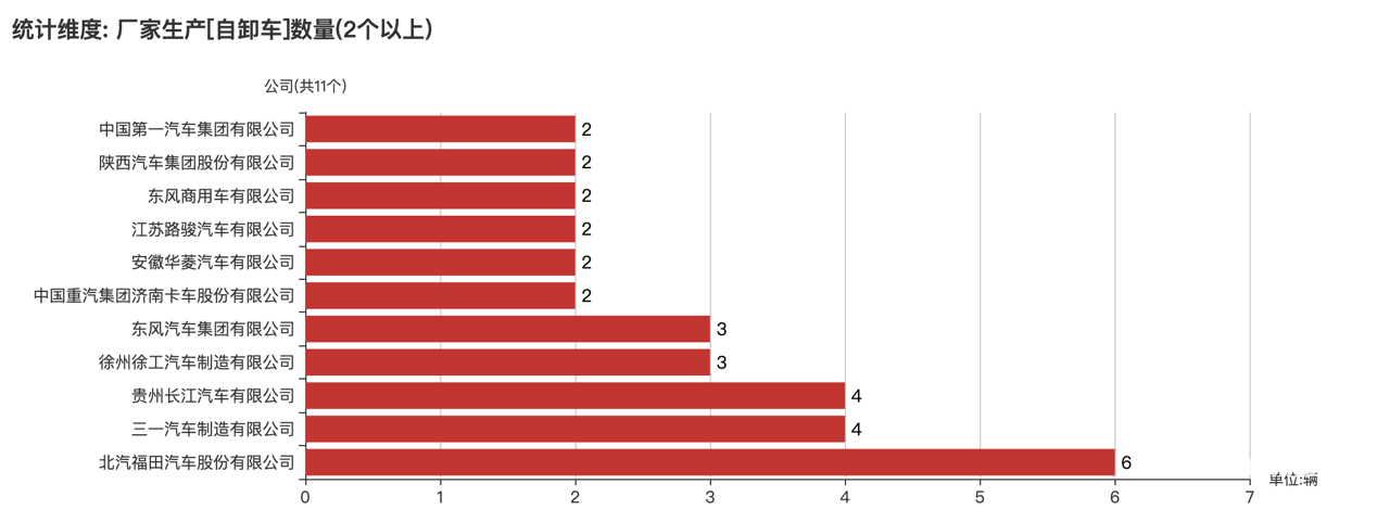 數(shù)量在2臺(tái)以上的自卸車企業(yè)情況