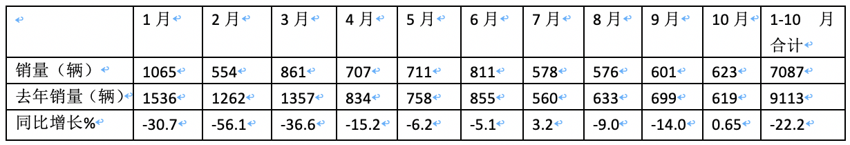 截圖1,2023年1-10月各月我國醫(yī)療專用車銷量(數(shù)據(jù)來源:公開的終端上牌信息)