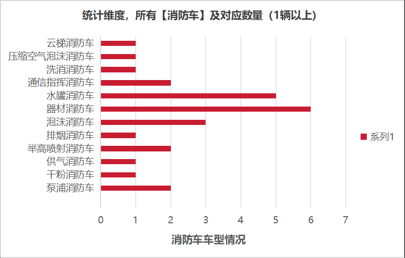 本次公告中的26款消防車(chē)的車(chē)型共有12種,泵浦消防車(chē)(2輛)、干粉消防車(chē)(1輛)、供氣消防車(chē)(1輛)、舉高噴射消防車(chē)(2輛)、排煙消防車(chē)(1輛)、泡沫消防車(chē)(3輛)、器材消防車(chē)(6輛)、水罐消防車(chē)(5輛)、通信指揮消防車(chē)(2輛)、洗消消防車(chē)(1輛)、壓縮空氣泡沫消防車(chē)(1輛)、云梯消防車(chē)(1輛)。