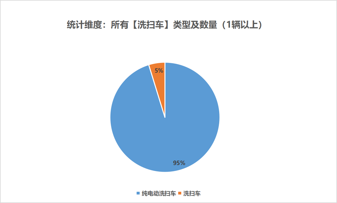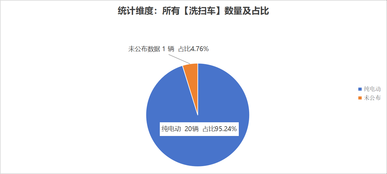 本次公告中的21款洗掃車中,純電動洗掃車(20輛,占比95.24%)、未公布能源情況(1輛,占比4.76%)。