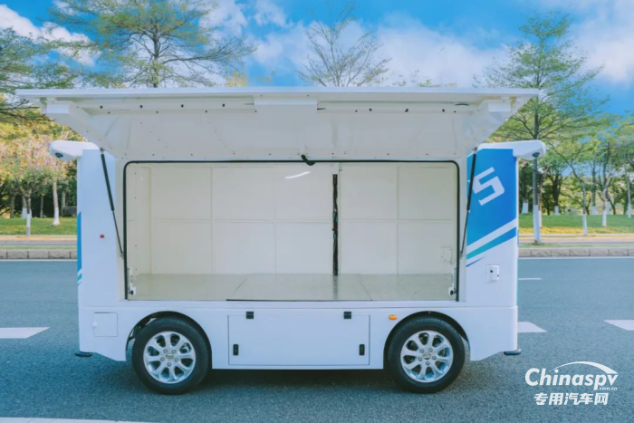 (文遠(yuǎn)知行W5無人物流車支持多種格口組合貨箱)