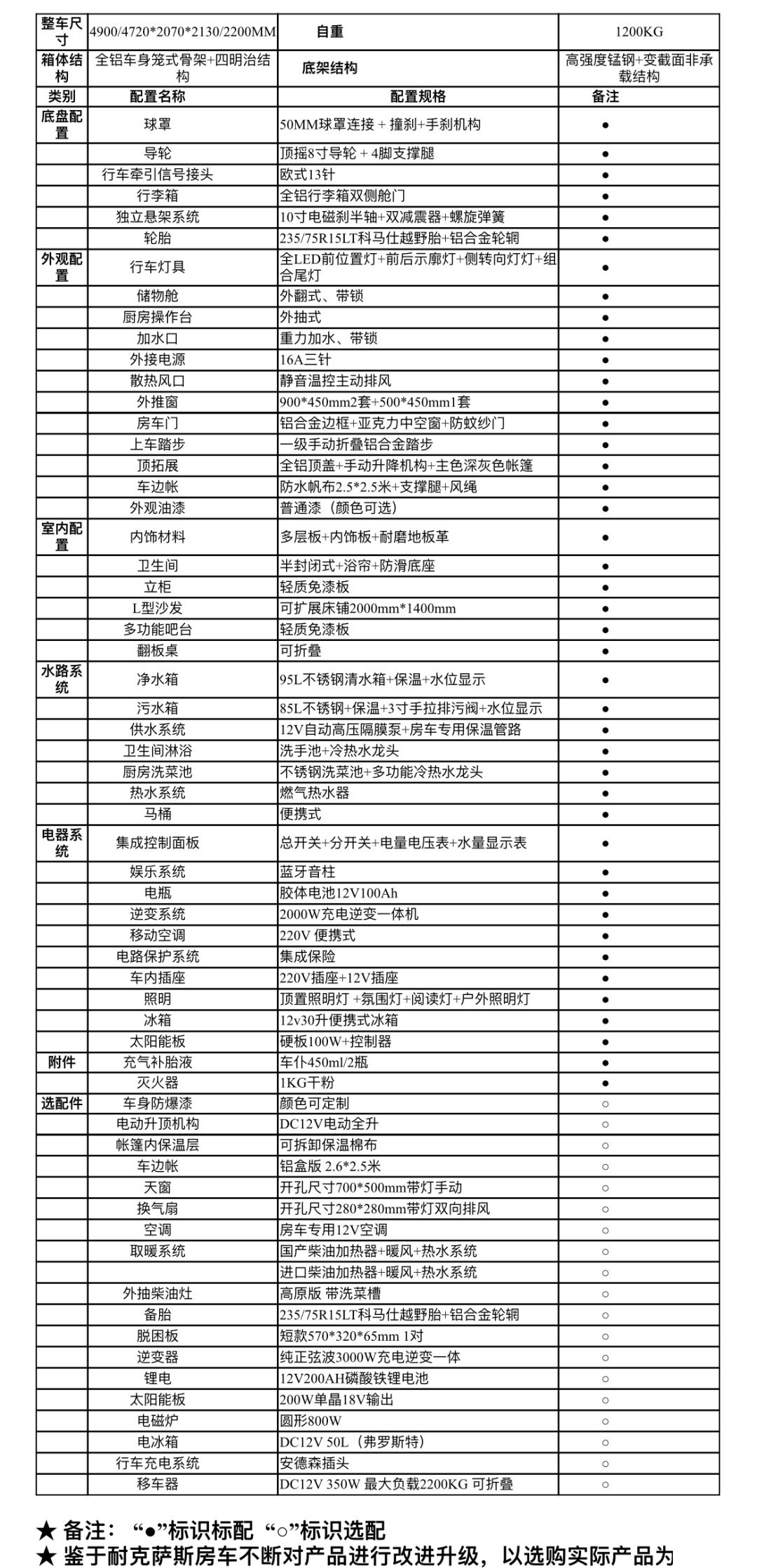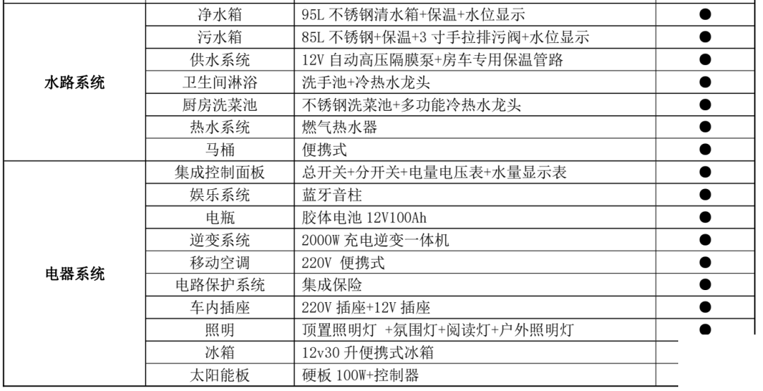 為迎合戶外越野用戶的動手需求,這款車水電配置能夠滿足基本的需要,如有特殊需求,我們留有足夠的空間供您發(fā)揮。具體情況如下: