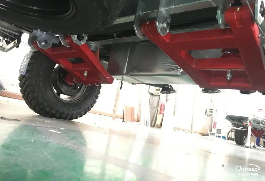 專為越野設(shè)計的底盤為獨(dú)立懸掛系統(tǒng),非承載結(jié)構(gòu),輪胎是越野輪胎,離地間隙30厘米,可有效保證穩(wěn)定性,即便遇到坑坑坎坎也能輕松自如的通過。車尾可配備備胎、工兵鏟等,備胎兩側(cè)還能外帶油箱或者脫困板,能夠?qū)崿F(xiàn)長距離的越野穿越。另外,電子剎車+駐車制動形式保證可靠的安全性。硬朗的線條,棱角分明,散發(fā)著濃郁的越野氣息。
