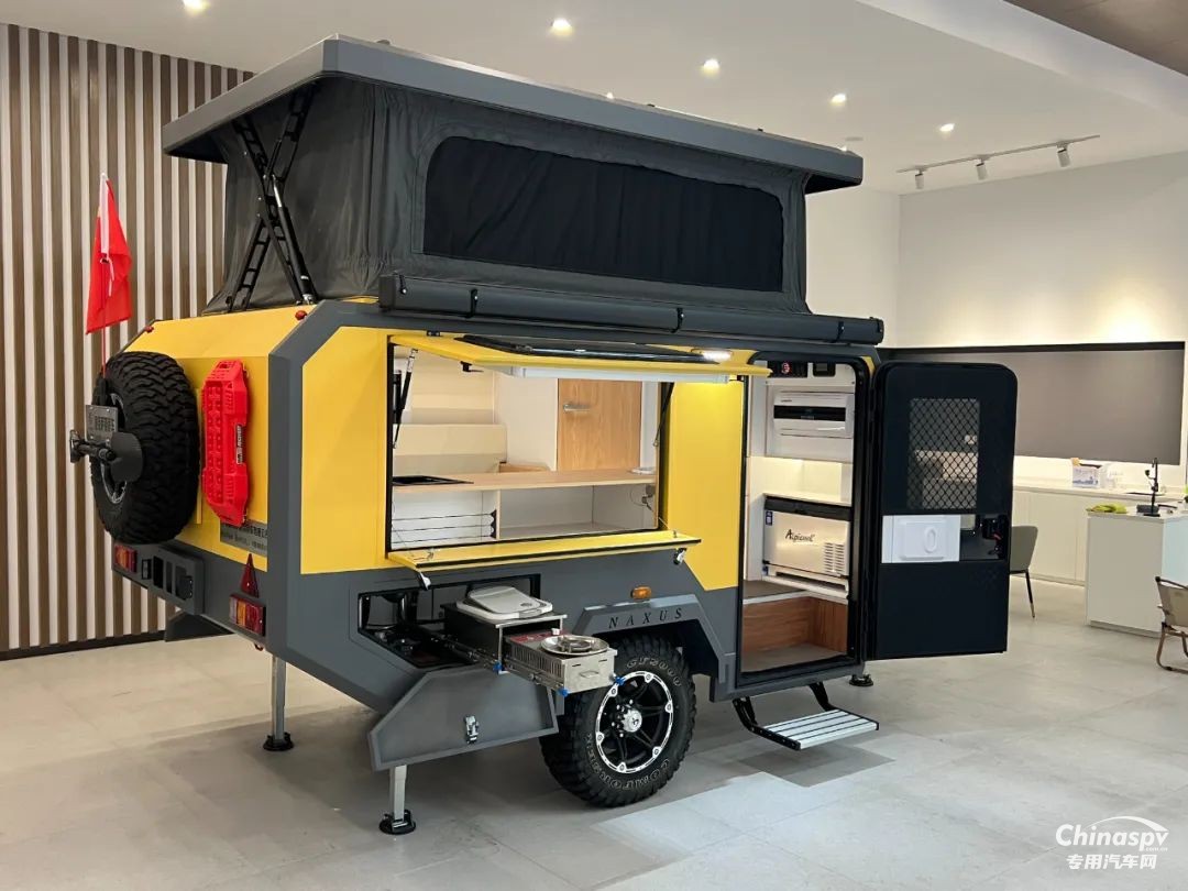 外部主要配置:澳式50 拖車連接器、重型雙輪導(dǎo)向輪、手動重型駐車支腿、外置超大儲物箱、手動升降頂棚、遮陽棚及抽拉高原版柴油灶(選配)等。