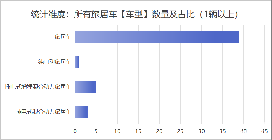 本次公告中的48款旅居車的車型共有4種,旅居車(39輛)、插電式混合動(dòng)力旅居車(7輛)、插電式增程混合動(dòng)力旅居車(5輛)、純電動(dòng)旅居車(1輛)。