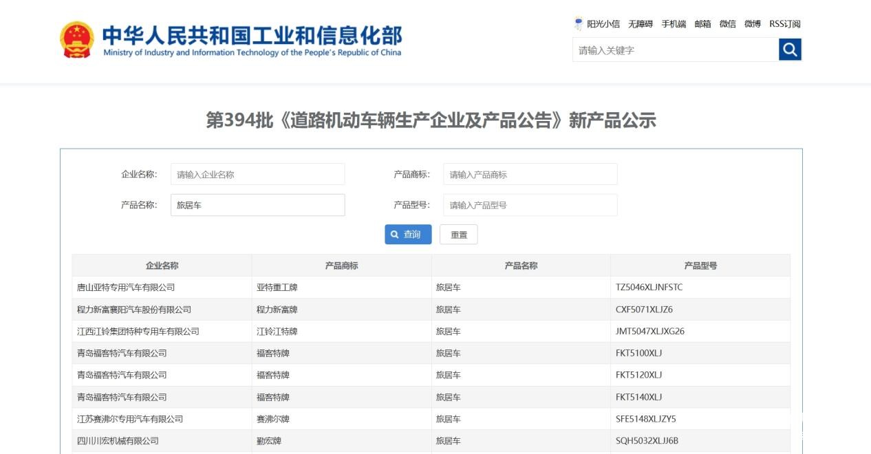 2025年4月,工業(yè)和信息化部在官方網(wǎng)站公示了申報(bào)第394批《道路機(jī)動(dòng)車輛生產(chǎn)企業(yè)及產(chǎn)品公告》(下稱《公告》),其中申報(bào)道路機(jī)動(dòng)車新產(chǎn)品車輛共1711輛。本文是針對(duì)本次公告中的旅居房車生產(chǎn)企業(yè)以及產(chǎn)品信息進(jìn)行的統(tǒng)計(jì)。