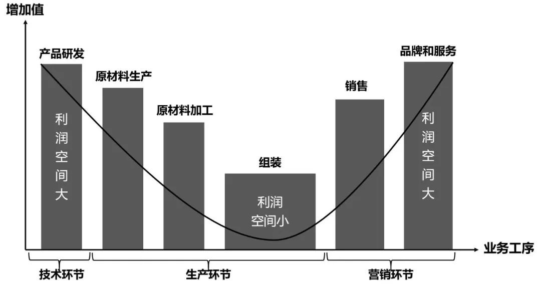 圖2:經(jīng)典的“價(jià)值鏈”增加值微笑曲線