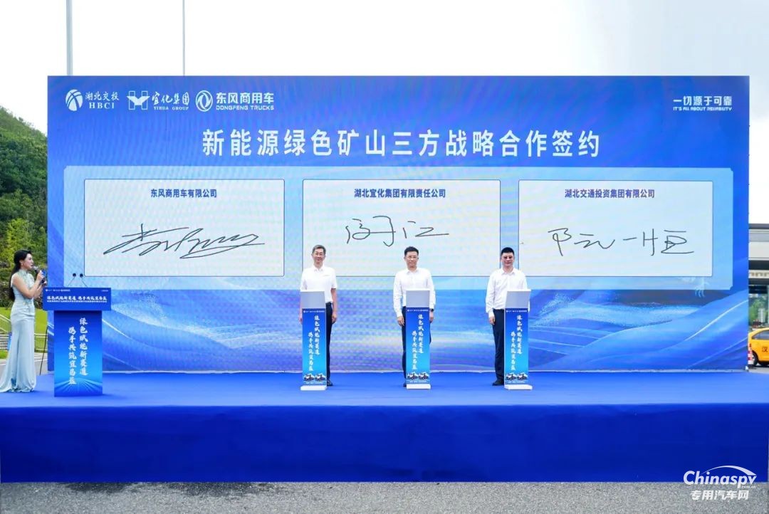 綠色賦能新賽道,攜手共筑宜昌藍。8月15日,東風商用車有限公司、湖北交通投資集團有限公司(以下簡稱“湖北交投”)、湖北宜化集團有限公司(以下簡稱“湖北宜化”)在宜昌舉行“新能源綠色礦山戰(zhàn)略合作簽約暨首批50輛新能源車輛交付儀式”。