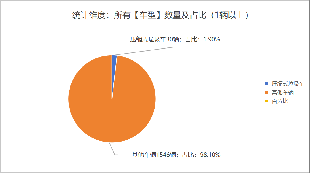 第397批新車產(chǎn)品公示中的1576輛產(chǎn)品中,壓縮式垃圾車(30輛,占比1.90%)