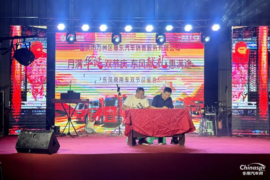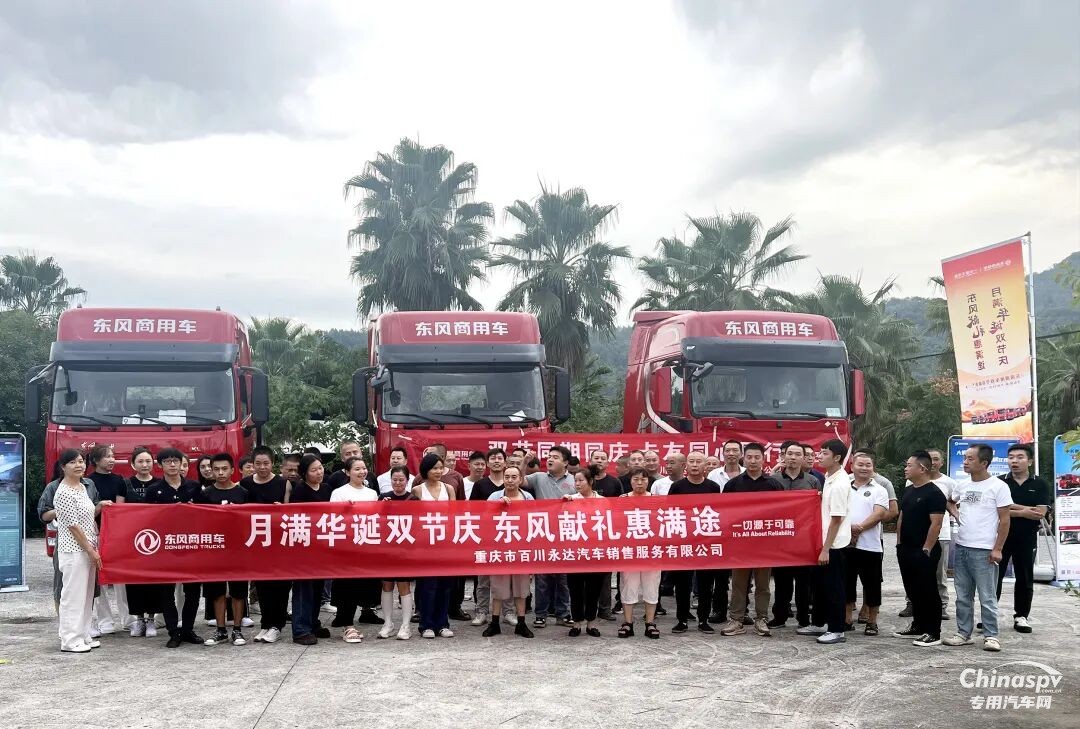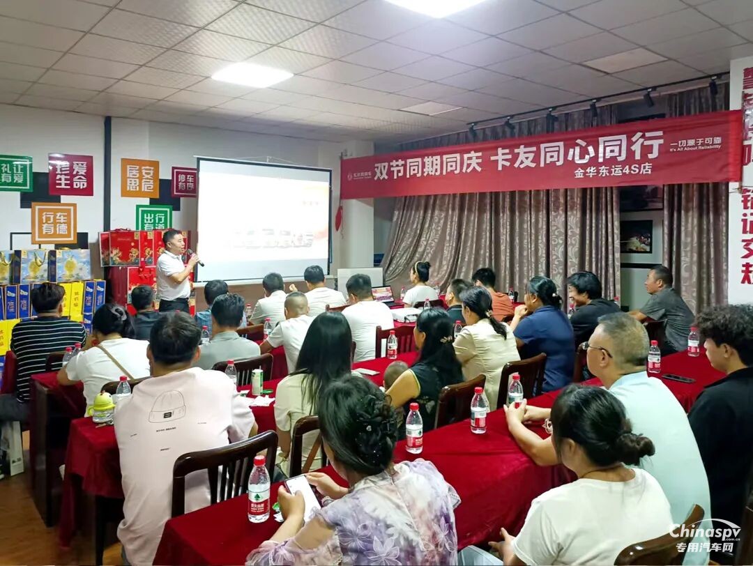 協(xié)同金華東運4S店開展“月滿華誕雙節(jié)慶 東風獻禮惠滿途”活動。現(xiàn)場布置喜慶,眾人齊聚,圍繞著醒目的紅色橫幅合影,周邊還有禮品陳列,營造出熱烈的氛圍。此次活動既借助雙節(jié)熱度為客戶帶來購車優(yōu)惠,也展現(xiàn)出東風卡車的品牌魅力,客戶開啟高效運輸新體驗。