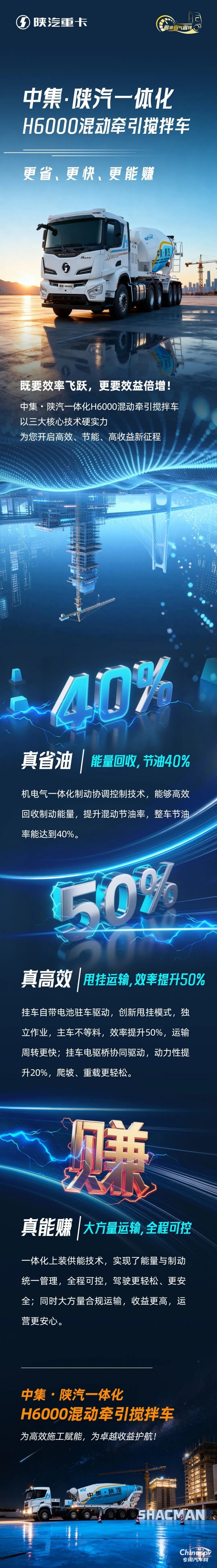 中集·陜汽一體化H6000混動牽引攪拌車,更省、更快、更能賺
