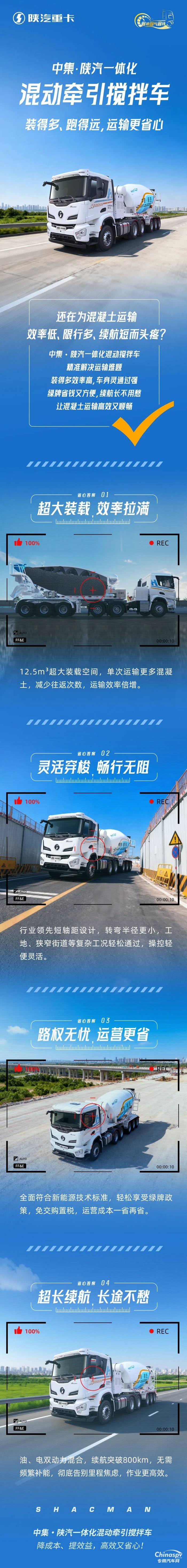 中集·陜汽一體化混動牽引攪拌車,裝得多、跑得遠(yuǎn),運(yùn)輸更省心