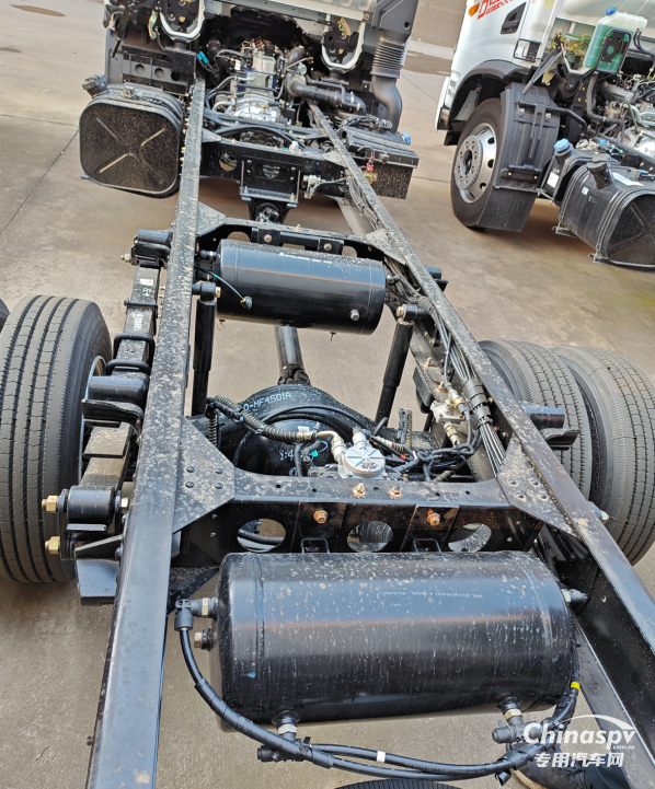 10噸罐式運輸底盤同樣實力不俗,192mm加強等直大梁結合7噸級后橋與高強度板簧,打造出穩(wěn)固的承載基礎。其罐體容積最大可達8.1m³,在同類車型中裝載能力領先,特別適合油品等液態(tài)危化品的高效轉運,是追求運輸方量的用戶的理想選購。
