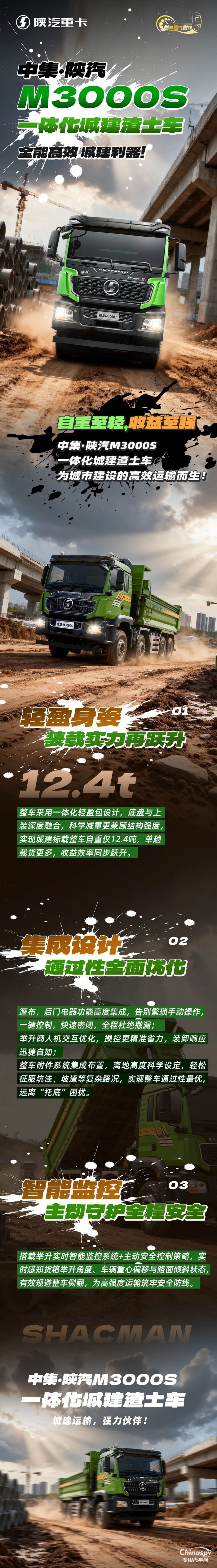 中集·陜汽M3000S一體化城建渣土車,全能高效 城建利器!