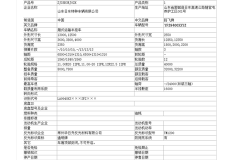 路飛牌YFZ9400XXYZ型廂式運(yùn)輸半掛車
