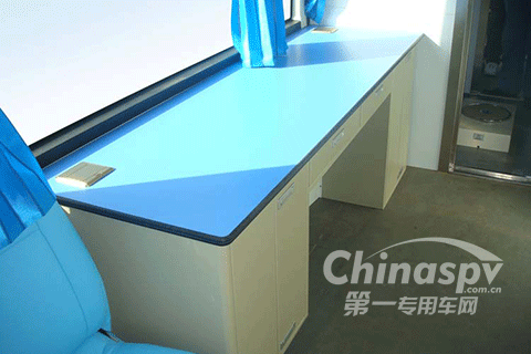 該車可封閉中門;可選裝左側(cè)中門,左側(cè)中門作為體檢通道門,僅在作業(yè)時開啟。側(cè)窗選裝局部推拉窗。配備X光機(jī),化驗儀器及檢查床等配套設(shè)施。營造一個輕松,愉快的體檢環(huán)境。