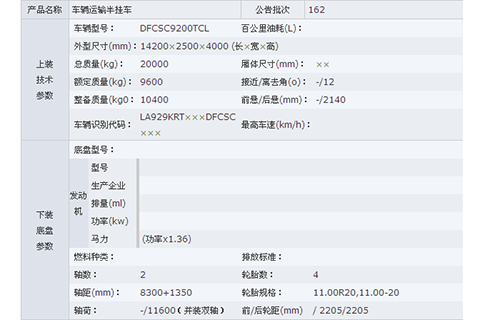 公告型號 東風車輛運輸半掛車