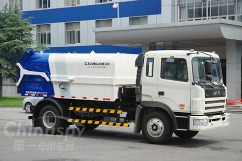框架結構垃圾箱采用加強梁和鋼板焊接而成牢固的框架結構,底板上布置有推鏟滑道,側面和頂面為圓弧曲面,內有隔板將垃圾箱縱向分為35%和65%兩部分,分別收運可回收垃圾和不可回收垃圾,外形簡潔、美觀,自重輕,受力好,不易變形;推鏟由鋼管骨架和折面板構成,不僅結構輕巧,又能使垃圾均勻分布,卸料干凈徹底;填裝器主要由填裝器殼體、滑板、刮板等構件組成,各構件采用受力良好的梁板或箱型結構,結構牢固,重量輕;