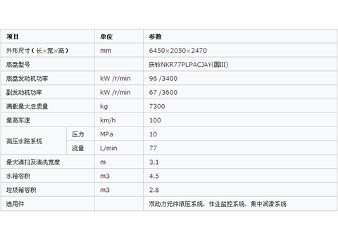 集掃路車和高壓清洗車功能于一體,實(shí)現(xiàn)在一次作業(yè)中完成清掃、高壓清洗和垃圾、污水的收集。