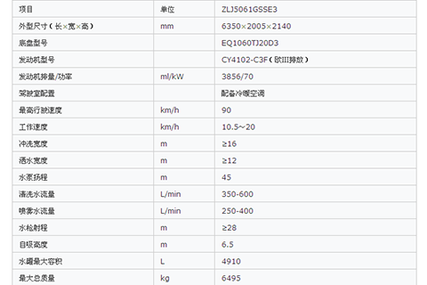 ZLJ5061GSSE3型灑水車是一種主要用于厚砂多灰、施工場地周圍路段等環(huán)境重污染路面的清洗,同時也適用于城市道路、廣場清洗、灑水和綠化澆灌的多功能灑水車。