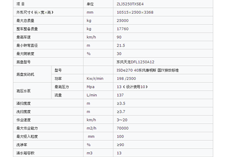 ZLJ5162TXSDE4洗掃車采用配有康明斯ISDE210-40型發(fā)動機(jī)的東風(fēng)天錦DFL1160BX5汽車二類底盤改裝,功率強(qiáng)勁,排放達(dá)到國Ⅳ標(biāo)準(zhǔn)。采用東風(fēng)康明斯國二排放的EQB160-20副發(fā)動機(jī),驅(qū)動高壓水泵及工作裝置液壓系統(tǒng)。主要配套件實(shí)行全球采購,采用國際名牌高壓水泵、水安全閥,高壓噴槍、噴嘴及進(jìn)口關(guān)鍵液壓、電器元件,性能優(yōu)良、工作可靠。