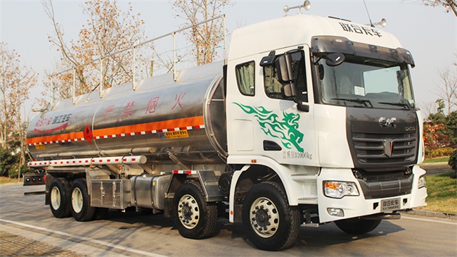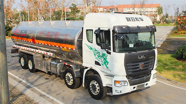 (3)整車采用盤式制動(dòng)器、排氣管前置,可匹配RSC電子防側(cè)翻穩(wěn)定系統(tǒng),通過發(fā)動(dòng)機(jī)限速,完全滿足國(guó)家危化品運(yùn)輸要求。
