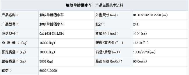 湖北潤力解放單橋灑水車CA1163P9K1L2E4