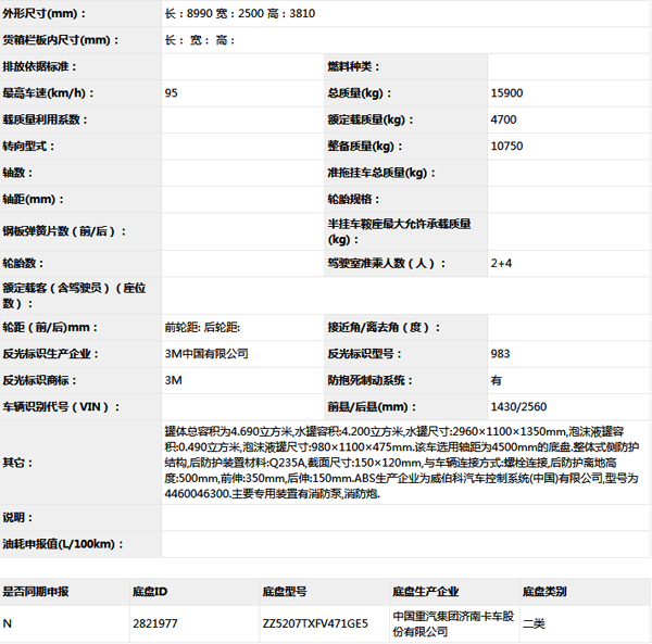 公告型號 XZJ5160GXFPM50/F2