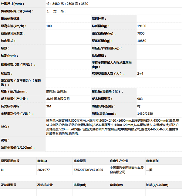 徐工牌XZJ5190GXFSG80/F2水罐消防車