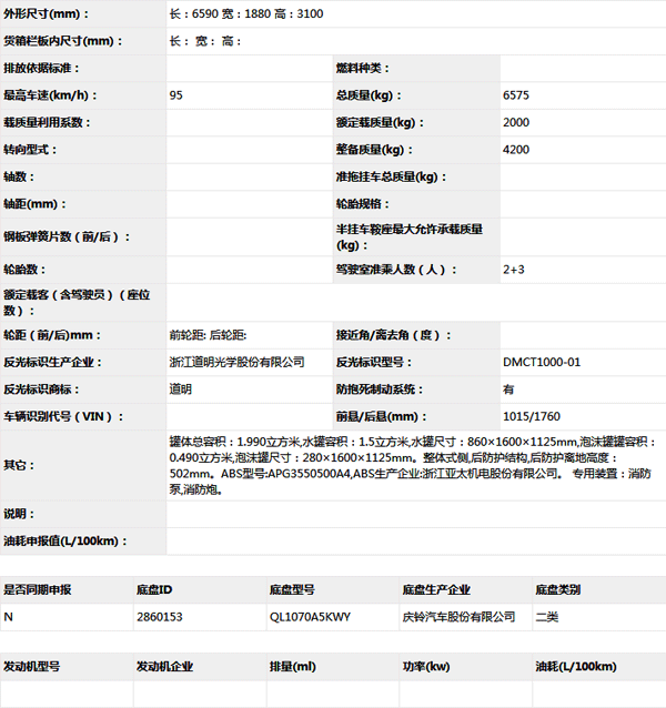 公告型號 SXF5071GXFPM20