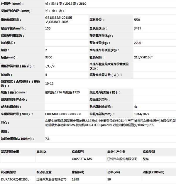 公告型號 CLW5036XQCJ5