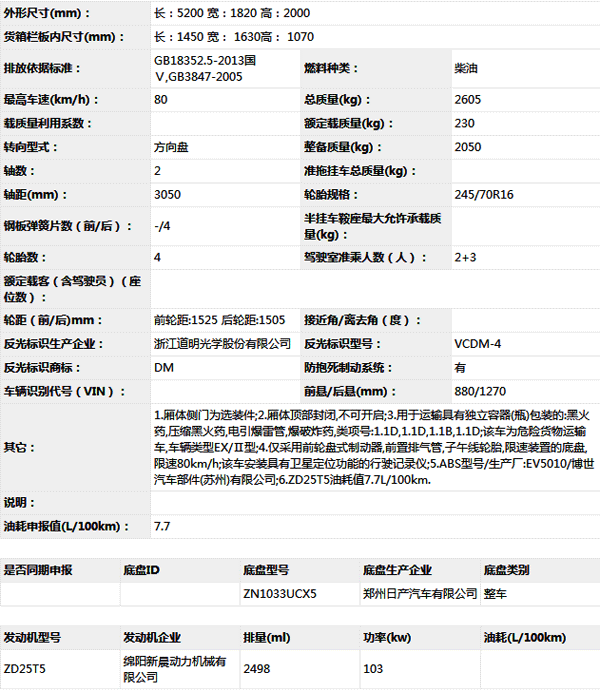 湖北五環(huán)華通牌HCQ5033XQYE5爆破器材運輸車
